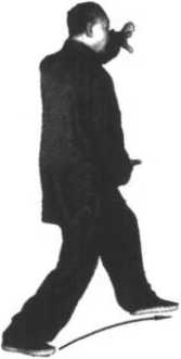 (1) 左脚前移里扣,右脚随即提靠于左脚内侧;同时,身略 左扭,两掌保持原势(图3-151)。