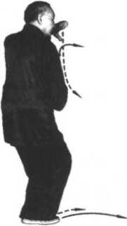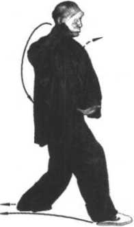 两掌划弧分合动作与步法一致,以腰为轴,全身尽量放松, 并以上身带动双掌,手眼相随,全神贯注,其行进路线为左右斜 前方。要求头顶、竖项、收须,脚底要稳,运用腰、胯的相互作 用,发出横劲,充分体现曲折前进快速敏捷之技巧。
