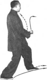 在练习回身到起势点时,为“左舶 形”,脚移身正为三体式步,双拳内旋 变掌,左伸右撤还原成三体式。