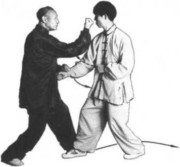 步;同时,身向右扭,左拳外旋变立拳向前击对方之胸部,目视 对方(图4-12)o