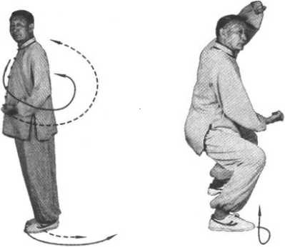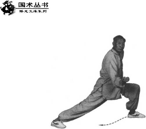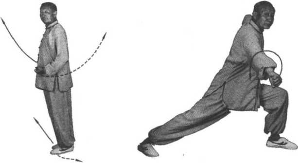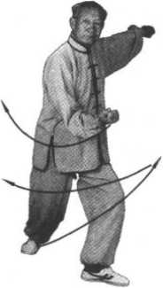 与前同,惟转身横拨与横 击动作,要以躯体扭转带动两 臂,形成一股整劲。