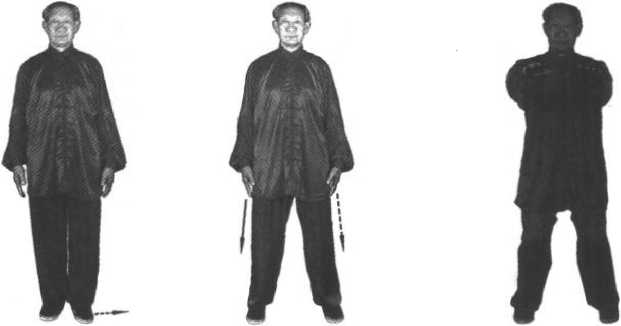 (1)立正姿势站立,意念集中,神态自然,全身尽量放松, 两目平视前方(图4-1)。