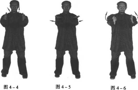 量放松,脚趾抓地, 之,两目向前平视。