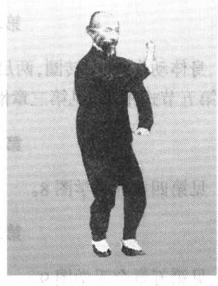 身体动作,两手转圈,两足起落,腹内一切之劲性情意,皆与第三章懒扎 衣,第五节式相同(见第三章懒扎衣第五节图7 )。