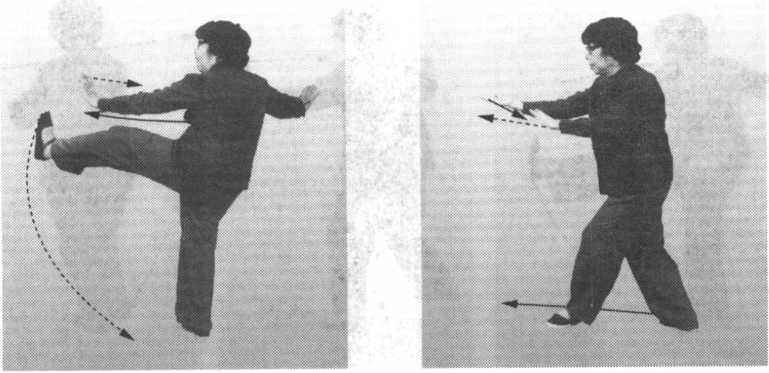 ^ 接前式。左足向前落地,