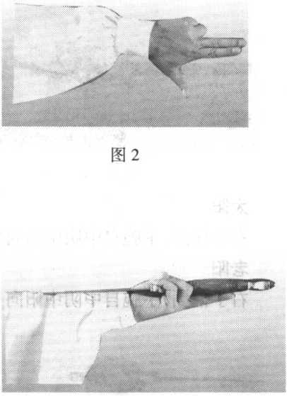 孙式太极拳诠真左手持剑系指背剑(剑背于臂 后),孙式太极剑左手持剑(背剑),是 左手虎口对着剑柄,姆指、中指、无 名指及小指由剑柄两侧握住剑格(护 手),食指伸直贴于剑柄之上,剑身平 贴于左臂后(图3)。孙式太极拳诠真
