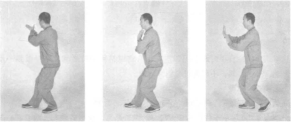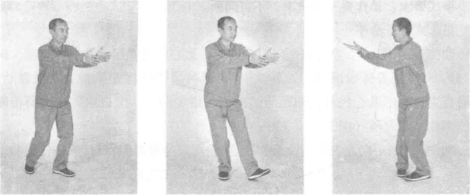 拳式要求:向前迈步既要轻灵,又要力量均匀,落地时不可出现断劲。 要注意身体保持中正。