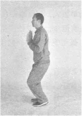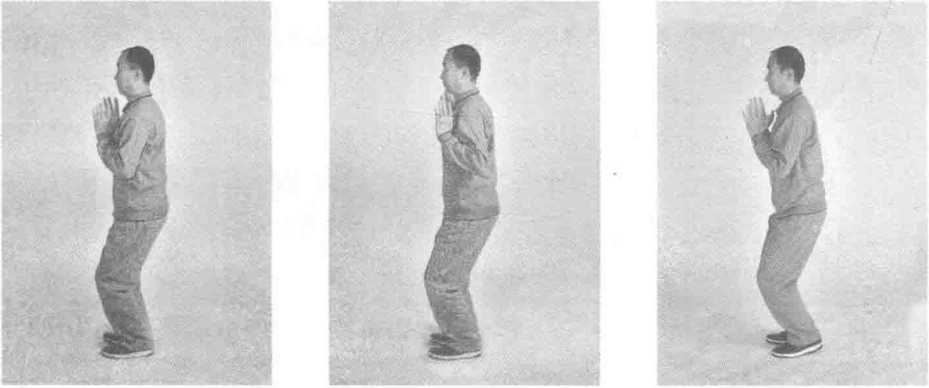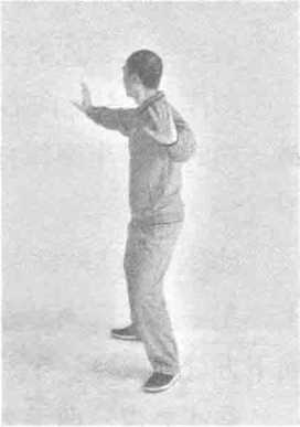 动作1:两手同时撤回胸前,肘尖靠肋,两手掌指向上,掌心相对,相隔 与脸同宽(图42)。