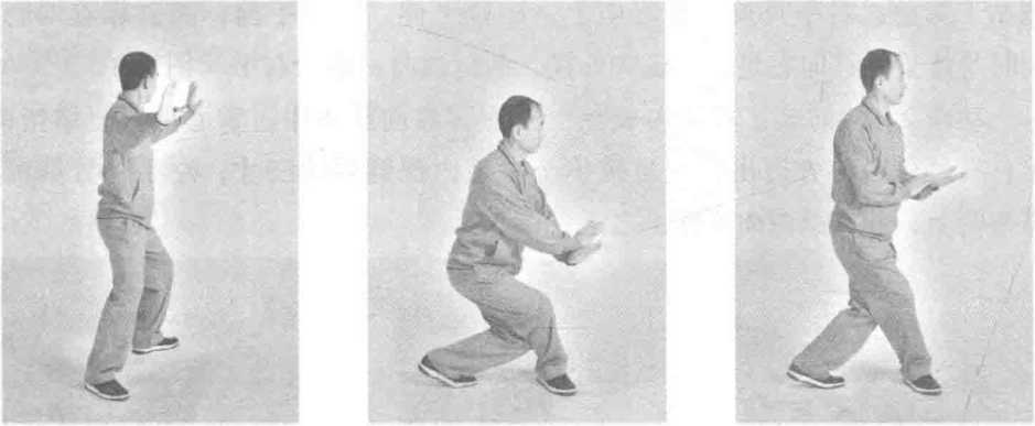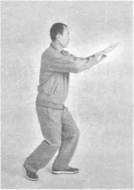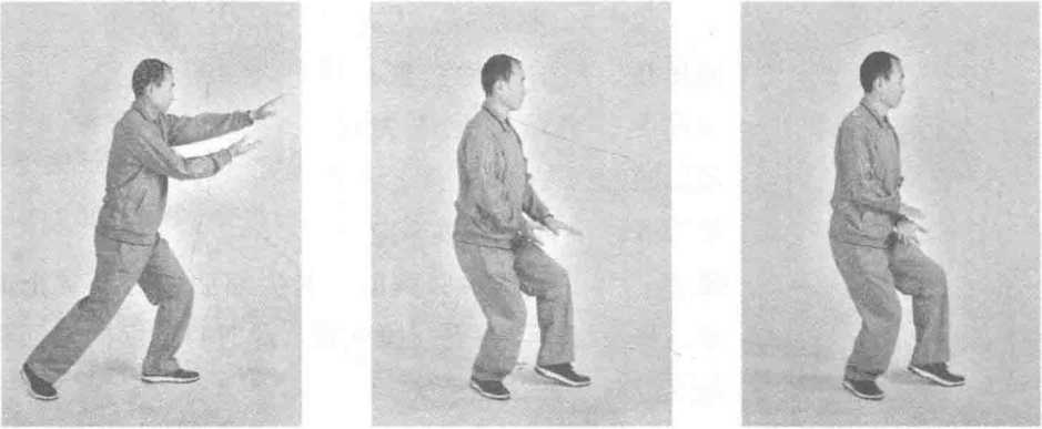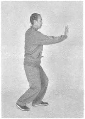 图34图34左胯一二寸许;同时左足全足落实,重心移至左足; 右足跟步至左足内踝侧后约三寸,足掌着地;眼看右 手食指尖(图35)。此式与第10式搂膝拗步动作要领相同,面对方左胯一二寸许;同时左足全足落实,重心移至左足; 右足跟步至左足内踝侧后约三寸,足掌着地;眼看右 手食指尖(图35)。此式与第10式搂膝拗步动作要领相同,面对方向和手足动作相反。