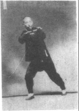许.两手相离二三寸许。随后两 拳手背仍朝上着.如前边有-- 物?即速往前直着撞去。两胳膊 似曲非曲?似直非直。心口对着 斜角.两眼望着两拳当中,直着 看去。右足于两拳往前撞时,同 时往前跟步,足尖落地半八字 形’与左足后跟相离一二寸许。 左足于两拳往前撞时,满足着 地.腰塌往劲.两腿皆弯曲着. 身子要直着点.式微停(见图 55)。
