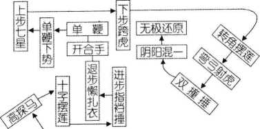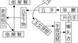 【简注】整套拳中,两手齐向同方向伸出的动作,除了抱虎推山和白鹤亮翅是两手平齐外, 其他的动作左右手都有先后、上下的区别,这主要是由于身形方向所决定的。