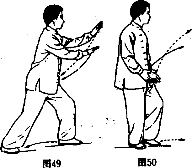 动作与第(十八)势“右揽扎衣''相同,唯左右方向 相反。(图 49、50、51、52、53)