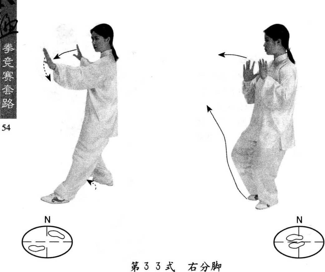 动作与“左分脚”分动3 相同,唯左右方向相反。