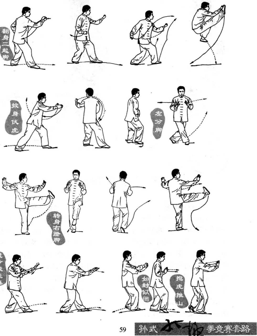 翻身二起脚T披身伏虎T左分脚—转身右蹬脚T