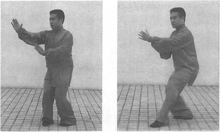虚步探掌(见图 3 - 102 ~ 3 - 103)。Empty stance and stretch palm (Fig.3- 102-3 - 103).
