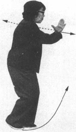 右足跟提起。身体右后转约90。。 同时,右手外旋微向前伸,举于右胸前,手心向