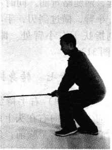图35图35图36图36接上式。当走至半 圆时,左脚上前扣步, 身体右转,右脚后撤一 步。同时双手掌心向上, 由身体两侧举起,双臂 内合向胸前下扑(两手 手心向下)。两腿随之 弯曲,剑锋横落至膝盖 以下,同时左脚向后撤