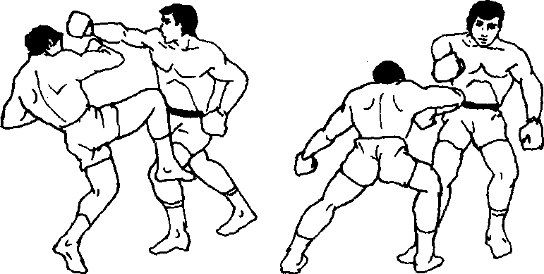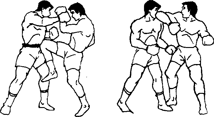 14 U人至格斗式,乙以左刺拳佯攻,右摆拳猛占中眠的 时,甲即以左小臂向左上挑挡,同时左脚铲踢乙前腿膝盖或胫 ? 196 ?