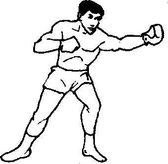 成左格斗式起,两脚左右分开,距离约为肩宽,腿微屈,重 心在两腿之中,同时右拳向前直臂冲出,拳心朝下,拧腰转体 力达拳面,重心稍前移,击打目标是对方脸部、胸腹部(图 18)。左直拳动作相反。