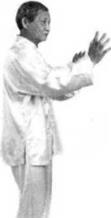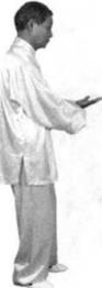 接前式币心向右腿转移沉实右掌下移至左腹前,掌心初内虎口初1二。