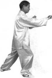 两手以掌变拳两小臂在胸部前方交叉,左小臂在右小臂前。两小臂弧行