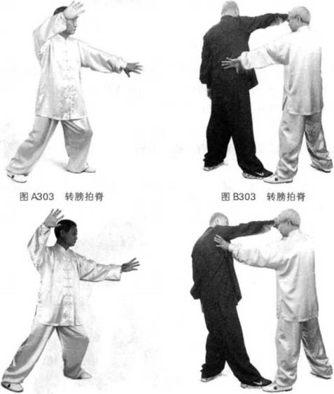 胸前肘尖朝前掌心朝右。(图302)(图302)