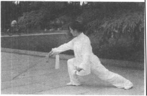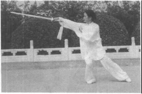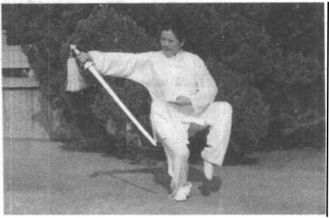 (1) 提膝调剑时上体要放松,右臂要随体转动,不要做成肢 体动作。