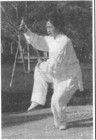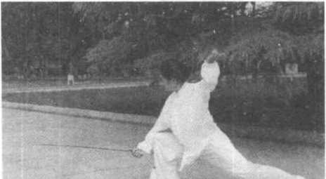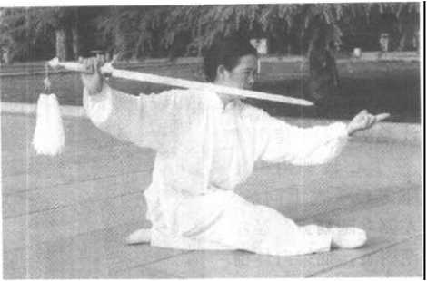 (2) 左脚向后退步时迈步稍大;叠坐的速度要匀;抽剑与前