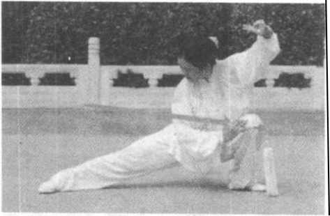(2) 弓步刺剑左臂要撑圆,但要注意肩部松沉、舒适,不得 起僵劲。