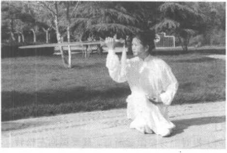 (3) 剑上举是过渡动作,与屈膝半蹲要同步。