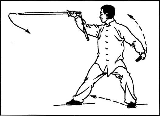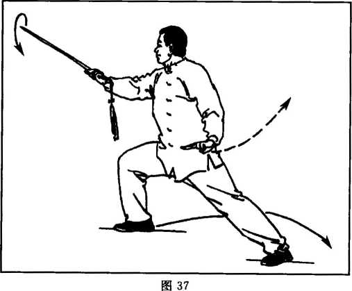 要点:肩、肘松活,以腰带臂,眼随剑走,运劲沉稳不断。停剑方 位要肯定,停剑时要稳,剑尖不可左右摇羌。