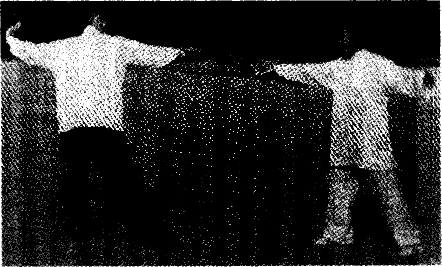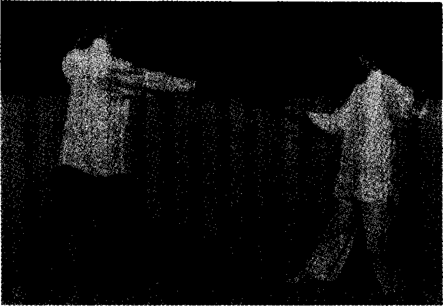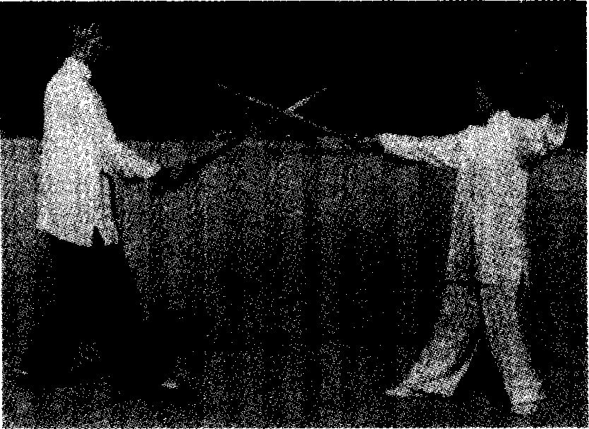 1.乙剪甲腕图五29(1)甲乙持剑对抗。右足在前,左足在后。右手持剑, 两剑外剑脊相接,向上交叉。互相注视对方面部,顾盼全 身及剑做上盘粘剑练习。(图五29)图五30(2)甲弓步,伸右臂,用剑刺乙胸部。乙右手剑突然脱 开甲剑,从甲右臂外侧用剑下刃剪甲右腕。(图五30)2. 甲撩乙腕图五31(1) 甲乙持剑对抗,做上盘粘剑练习,如图五29所zK o(2) 乙弓步,伸右臂,用剑刺甲胸部。甲身向左转,弓 左膝成左侧弓步;右手剑突然脱开乙剑,反手用剑下刃, 从乙右臂外侧向上撩乙持剑之右手腕。(图五31)