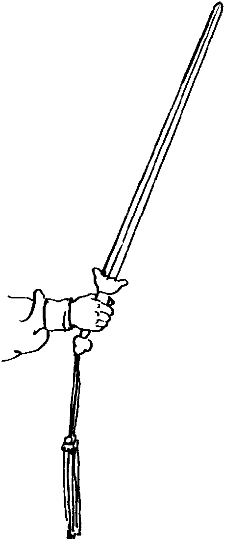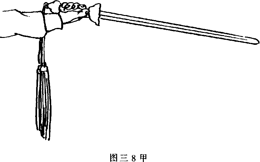 1. 刺的握剑方法正手刺握剑法右手握剑,正手,五指握剑柄,屈拇指与食指相扣;剑身水平竖立,上刃朝上,下刃向下。当刺中对方身体时,五 指与手掌握实剑柄。(参见图三5)反手刺握剑法右手握剑,反手,五指握剑柄,拇指与食指相扣;剑身 水平竖立,下刃朝上,上刃向下。当刺中对方身体时,五指与手掌握实剑柄。(参见图三4甲、乙)2. 劈的握剑方法右手握剑,正手,五指握剑柄,屈拇指与食指相扣;剑 锋向前上方,竖剑,用下刃自上向下劈。当劈中对方时,五 指与手掌握实剑柄。(图三7)
