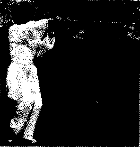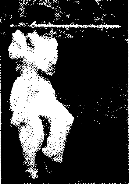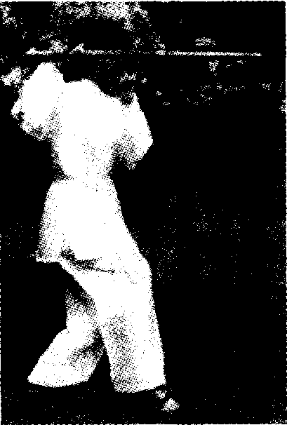 一腿屈膝坐步,脚尖外撇45。;另一腿 向前伸出半步,微屈膝,脚尖虚点地。重心 落于后足。(图三22甲)