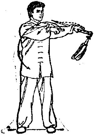 头颈自然竖直,下颌微收,上体保持自然,不可挺胸收 腹。两肩臂要自然松沉。剑刃不可触及身体。精神要集中。