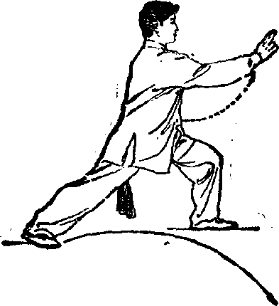 1 ?左脚提起向左迈半步,与肩同宽;身体重心在两腿中 间,同时两臂微屈略内旋,两手距身体约10厘米;目视前方