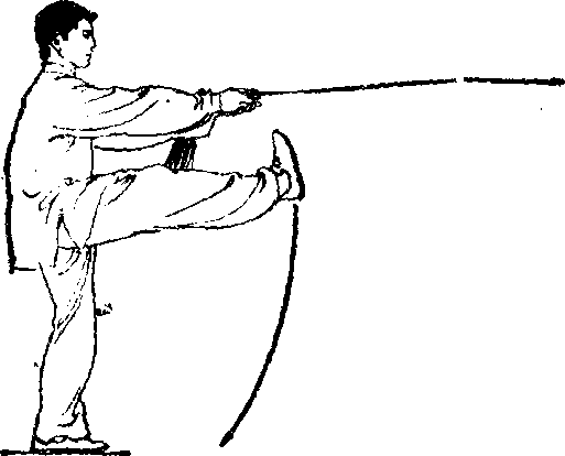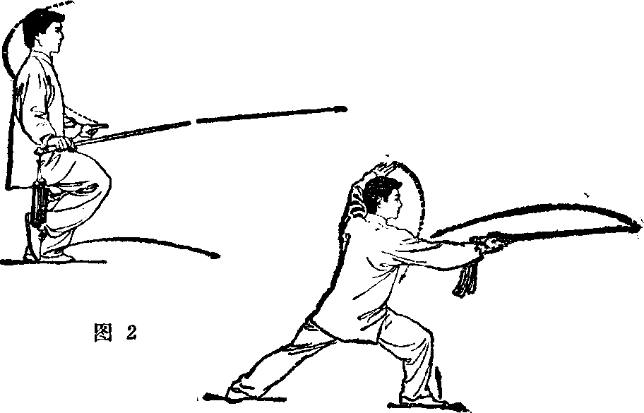 前俯或挺腹,脚高不得低于腰部。剑向前平刺时两臂要保持 松沉。