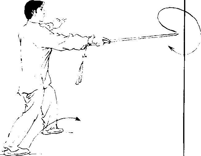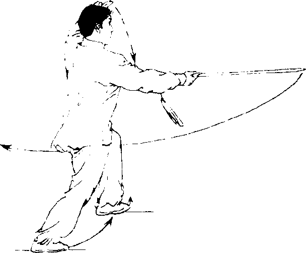 此势为左云抹剑,要领同石云 抹剑。右、左云抹剑要连贯完成。