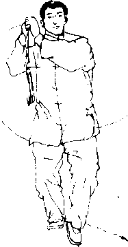 【意 气】意想腰如车轴带动两手抡劈剑,劈剑走立圆,前半 圈吸气,后半圈呼气G