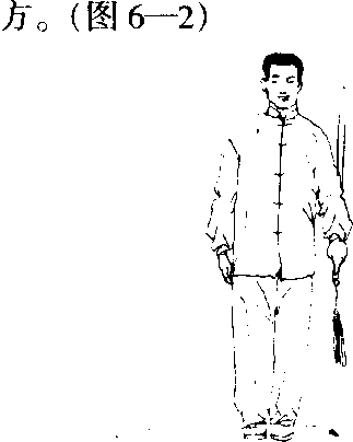 在两腿中间,同时两臂微屈略内旋,两手距身体约10厘米;目视前