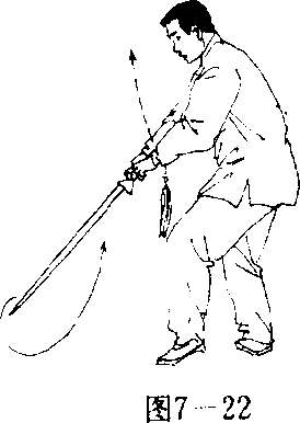 右腕部并随右手剑上提;目视剑刃。(图7—23)