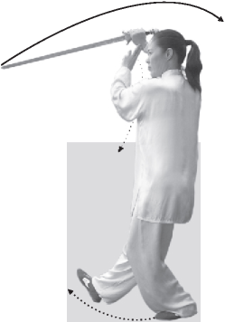 上步举剑 上体右转,左 脚向前上步, 脚跟落地,右 手持剑上举, 眼看前方上步举剑 上体右转,左 脚向前上步, 脚跟落地,右 手持剑上举, 眼看前方