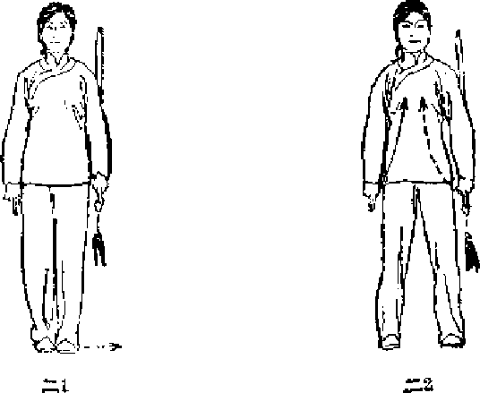 U 左脚向身体左蒯分开半步。目视前方(图二2)口