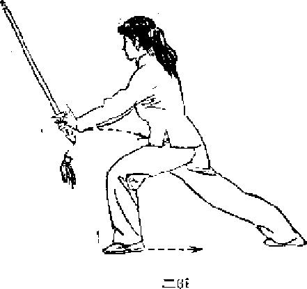 2*左脚上步,随即右脚提起¥左剑指向前伸出,身体略