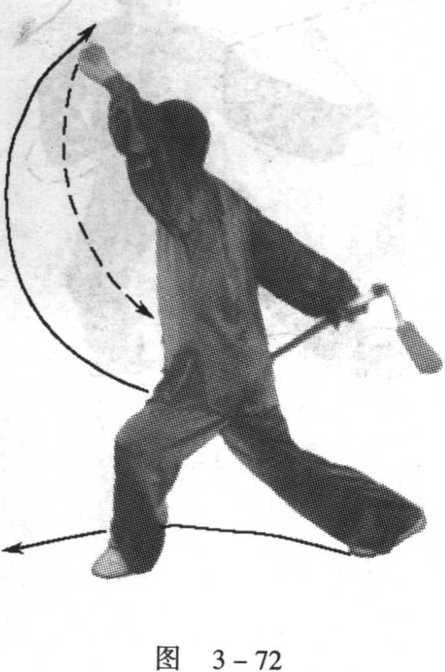 图 3-73图 3-73右脚向前(西)上步,脚尖内扣,上体左转侧 倾;同时,右手持剑上挑至身体右侧,左手剑指收 至腰间;目视剑尖(图3-73)。
