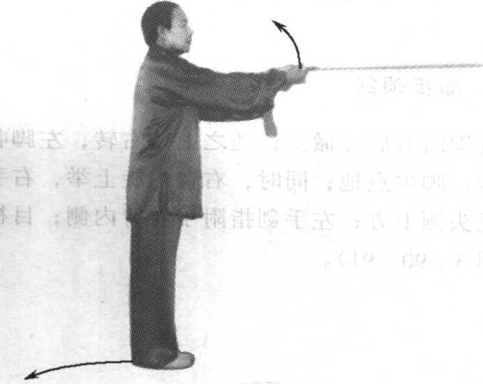 (2)刺剑、并步和左手剑指前伸要协调一致, 方向转为正东。