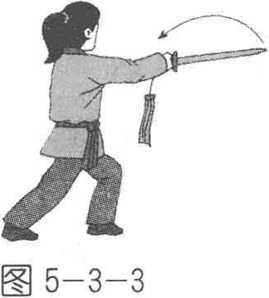 (3) 右手持剑回撤、下卷、前刺动作的全过程,要在转 腰的带动下完成,动作要圆活、连贯、自然。