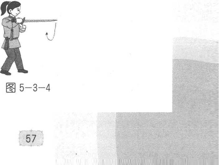 (1) 右手持剑回撤时,前臂内旋,手心转向外,同时应 控制剑尖不要外摆;
