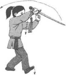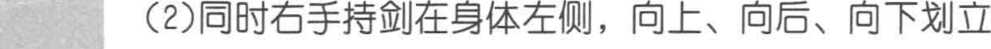 (3) 右剑划圆绕转要贴近身体左侧。
