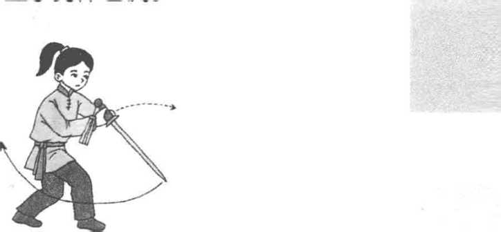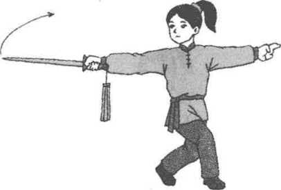 (3) 左剑指向前指出,手心向下,两臂伸平,目视剑尖。 2.技术要点
